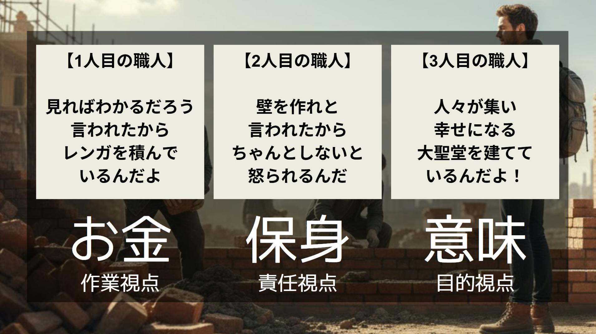 講話では、AIが人間を超える知識や処理能力を持つ一方で、「人と人をつなげて新しい価値を生み出す力は、人間にしかできない」と熱のこもったメッセージを伝えました。中盤では、イソップ寓話の「3人のレンガ職人」を紹介。この話を通じて、「同じ仕事でもやらされているという気持ちではなく、意味を理解して目的を持って行動することが大切だ」と語りかけました。