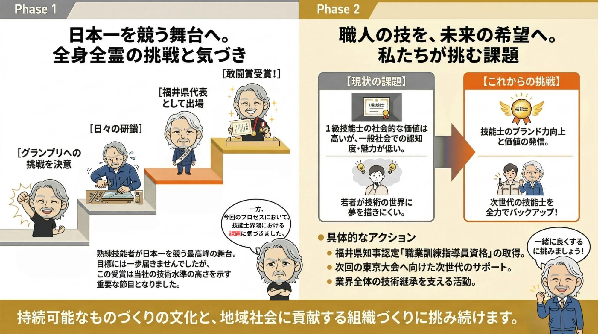 職人の技能が未来の希望となるよう、当社はこれからも持続可能なものづくりの文化と、地域社会に貢献する組織づくりに挑み続けます。