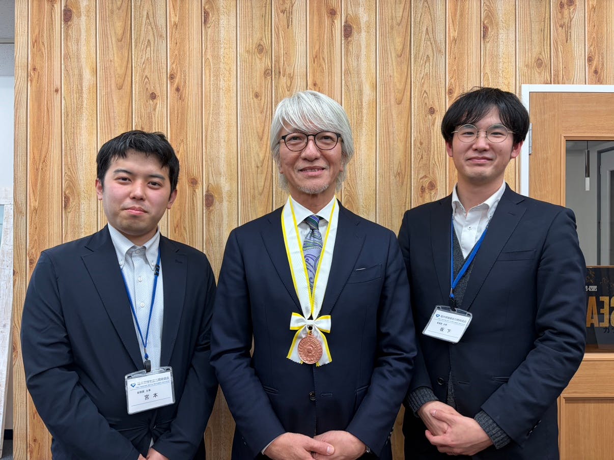 福井県職業能力開発協会のお二方が、敢闘賞のメダルを届けてくださいました。